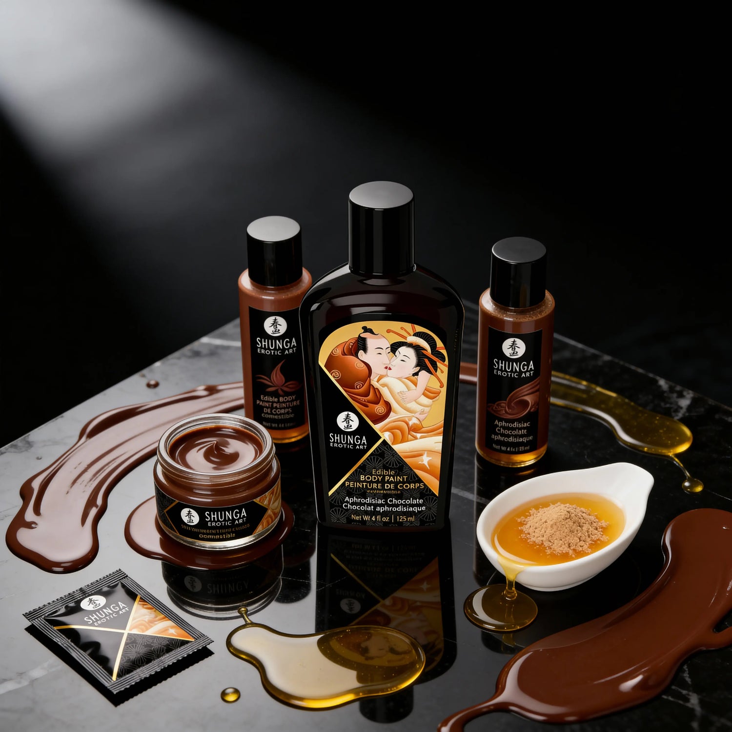 Stell dir vor, ihr seid zu zweit, das Licht ist gedimmt, der Duft von Schokolade liegt in der Luft – und jeder Kuss wird zu einem süßen Versprechen. Mit der SHUNGA Sweet Kisses Collection verwandelst du eure Date-Night in ein sinnliches Erlebnis, das lange im Gedächtnis bleibt.